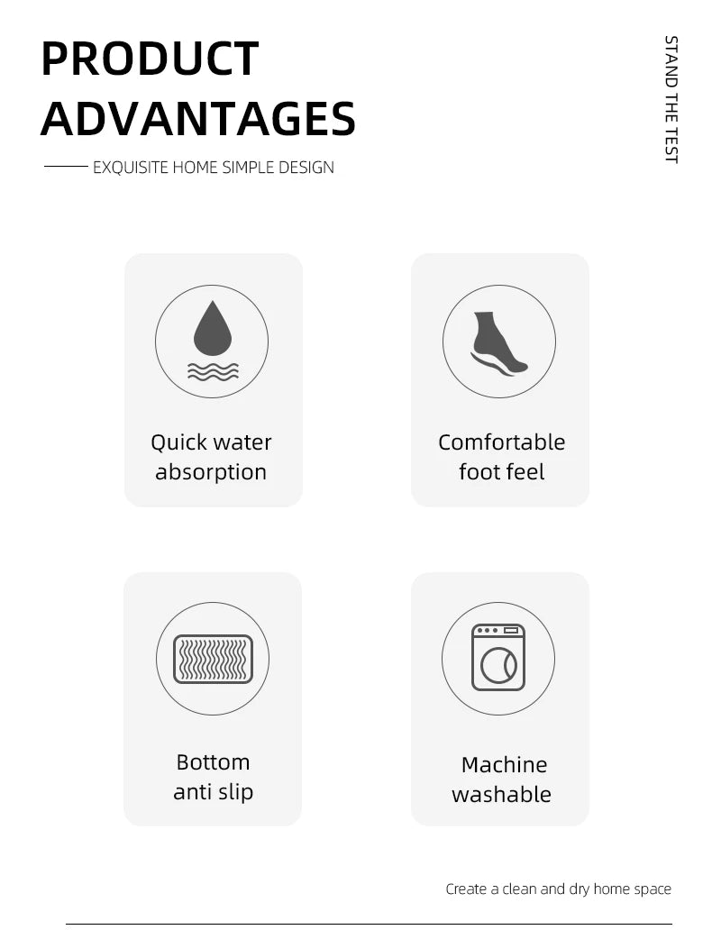 • Quick Water Absorption :The mat features a quick water absorption mechanism, ensuring the bathroom stays clean and dry. This feature also prevents slips and falls.